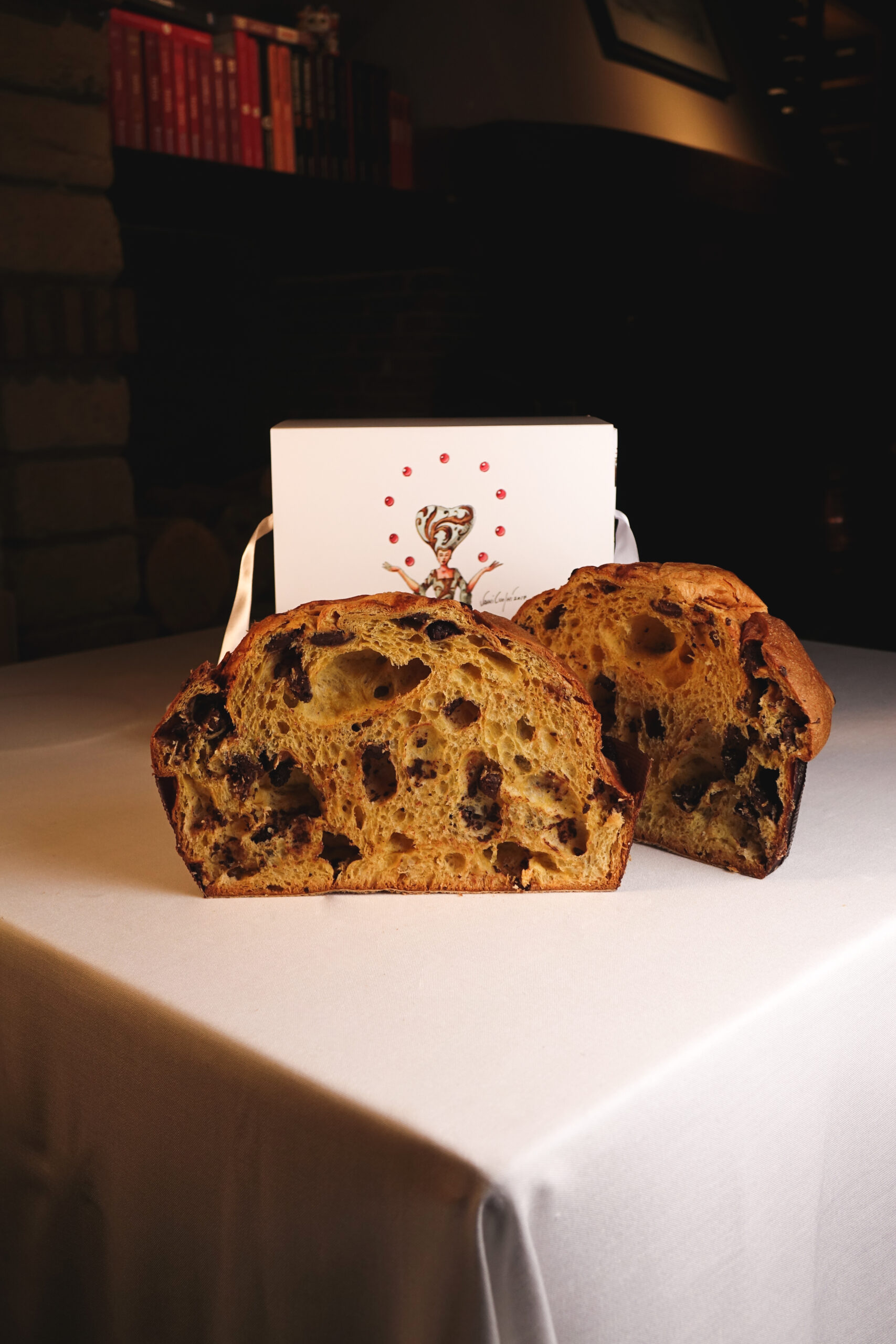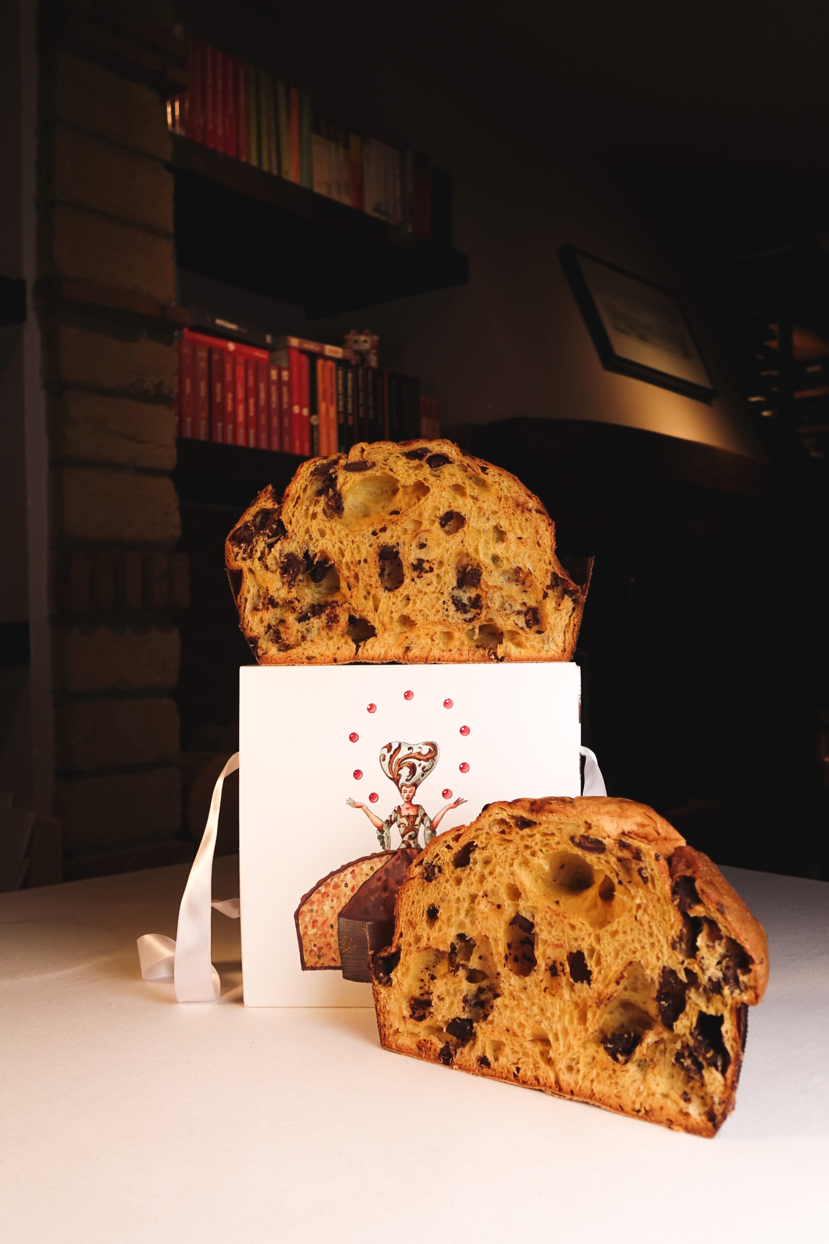 Il Panettone ai Tre Cioccolati è l’evoluzione gourmet del panettone firmato Taverna Estia, racchiuso in un’elegante confezione d’autore ideata in esclusiva dall’artista di fama internazionale Vanni Cuoghi.